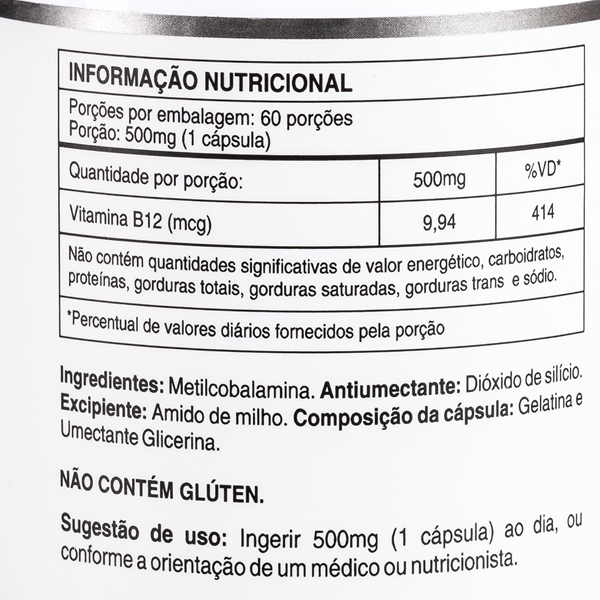 INGREDIENTES: Metilcobalamina. Antiumectante: Dióxido de silício. Excipiente: Amido de milho.